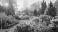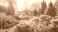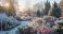 • Serene winter garden scene with frostcovered flowers and plants bathed in the warm glow of the early morning sun