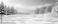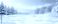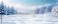 • Beautiful winter background of snow and blurred forest in background, Gently falling snow flakes against blue sky. Wide panorama format.
