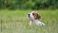 • Szczeniak rasowy jack russell terrier na polanie w trawie.