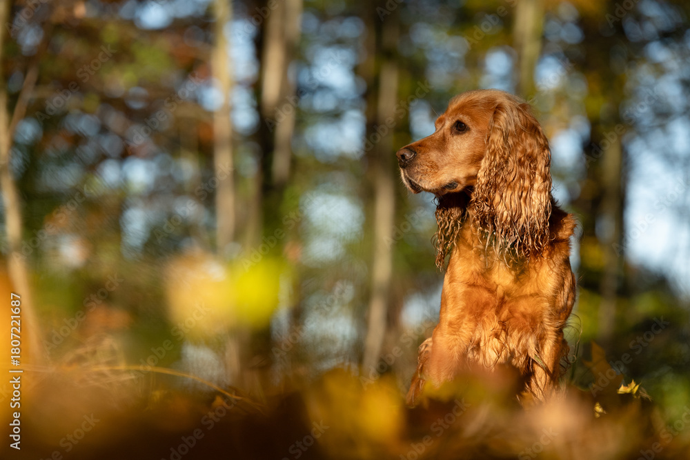 Plakat Zwierzęta - Portret cockera spaniela w jesiennym lesie #1807221687