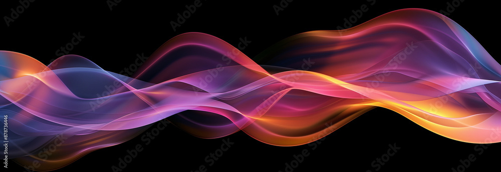 Plakat do Biura - Abstrakcyjne tło - nowoczesna neonowe fale z cieniem i kolorowym światłem na czarnym tle. Olejne... #878736446
