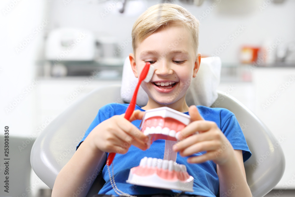 Plakat do Dentysty - Stomatologia, radosne dziecko na fotelu dentystycznym #253008350
