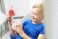 Aparat ortodontyczny, piękny uśmiech dziecka. Mały chłopiec z aparatem ortodontycznym