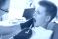 Mężczyzna u dentysty. Zastrzyk ze znieczuleniem wykonywany przez ładną panią doktor.