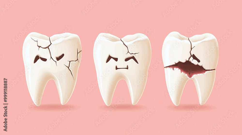 Plakat do Dentysty - Różne rodzaje uszkodzeń zębów, w tym pęknięcia i złamania. Obraz ma na celu edukację pacjentów na... #999118887