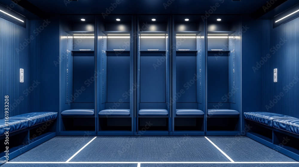Plakat do Fitness Clubu - A blue locker room with five lockers #1161933208