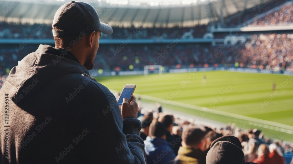 • Social media rumors affecting a man at a sports event. Featuring distraction and concern