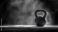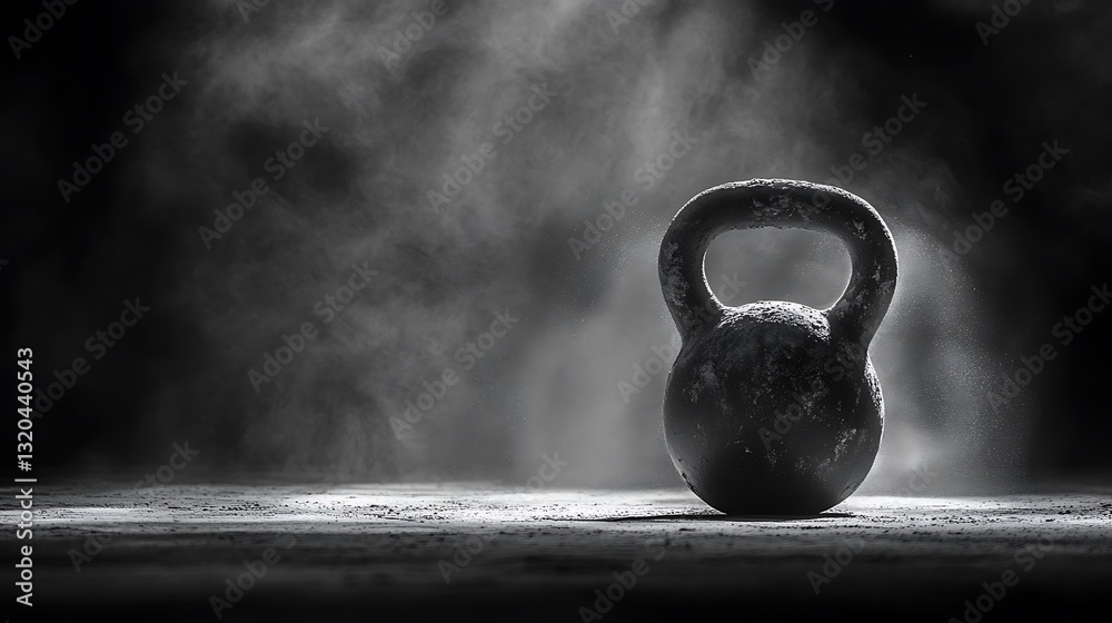 Plakat do Fitness Clubu - Isolated Kettlebell on Surface with Dust Particles in Dark Environment #1320440543