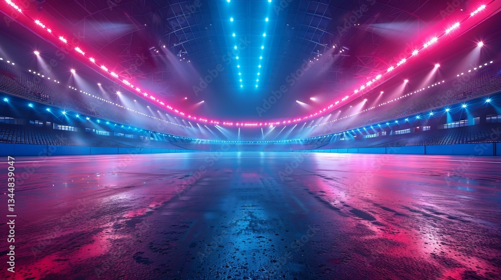 Plakat do Fitness Clubu - Dynamic sports arena blurred motion lights high energy composition and branding space #1344839047