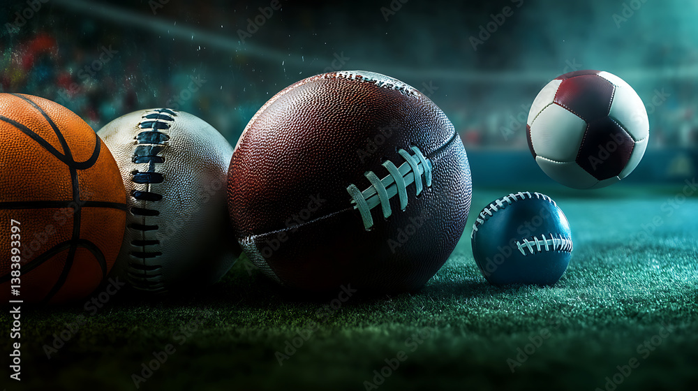 • A banner for sports betting that includes a football, soccerball, basketball, baseball, hockey puck