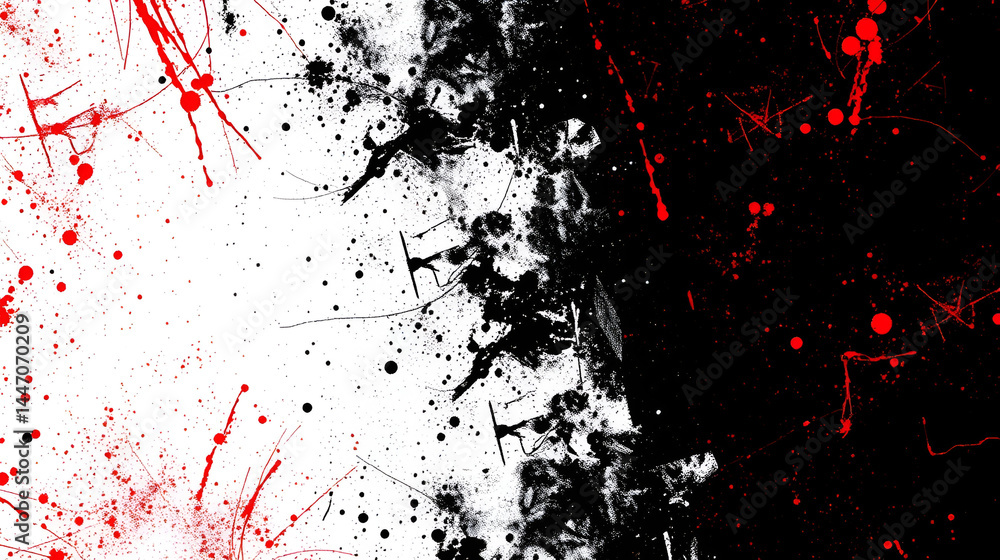 • Black and Red Abstract Halftone, Gritty, Grunge Background with Copy space. Sports / Dynamic Backdrop