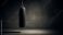 • Punching Bag Hanging in Dark Gym Interior with Concrete Wall