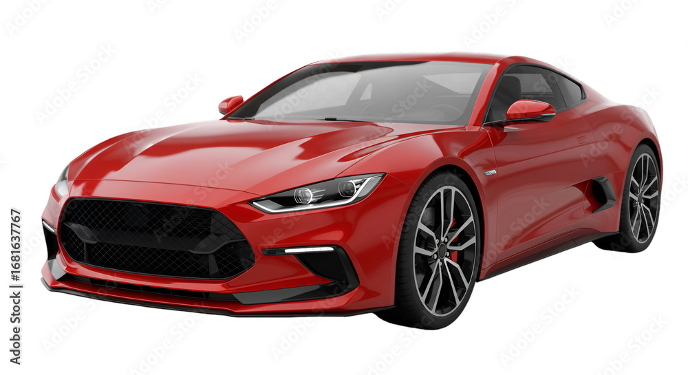 • Sleek red sports car design with dynamic lines and modern aesthetic, perfect for luxury automotive advertising and showcasing speed isolated PNG on transparent white background