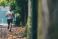 • Determined young man running outside in the park. Fit boy doing exercise outdoor. Beautiful sporty male run alone. Sweaty athlete training with towel. Wellness, health, sport, fitness open air concept
