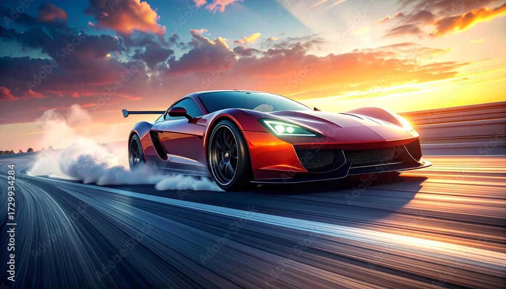 • Dynamic marks, color one suitable animated tire bend drifting sports exhilarating background, around sleek D render car Action,