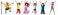 • Group of young boys and girls jumping, smiling, full of energy, captured in motion isolated on white or transparent background background