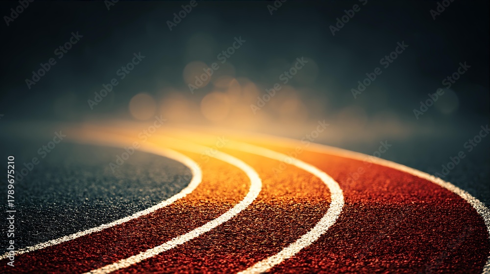 Plakat do Fitness Clubu - Dynamic Closeup of Glowing Orange and Red Running Track Lanes #1789675210