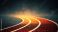 • Dynamic Closeup of Glowing Orange and Red Running Track Lanes