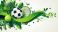 • Vibrant green foliage frames a soccer ball and tennis ball with rackets, abstract sport design