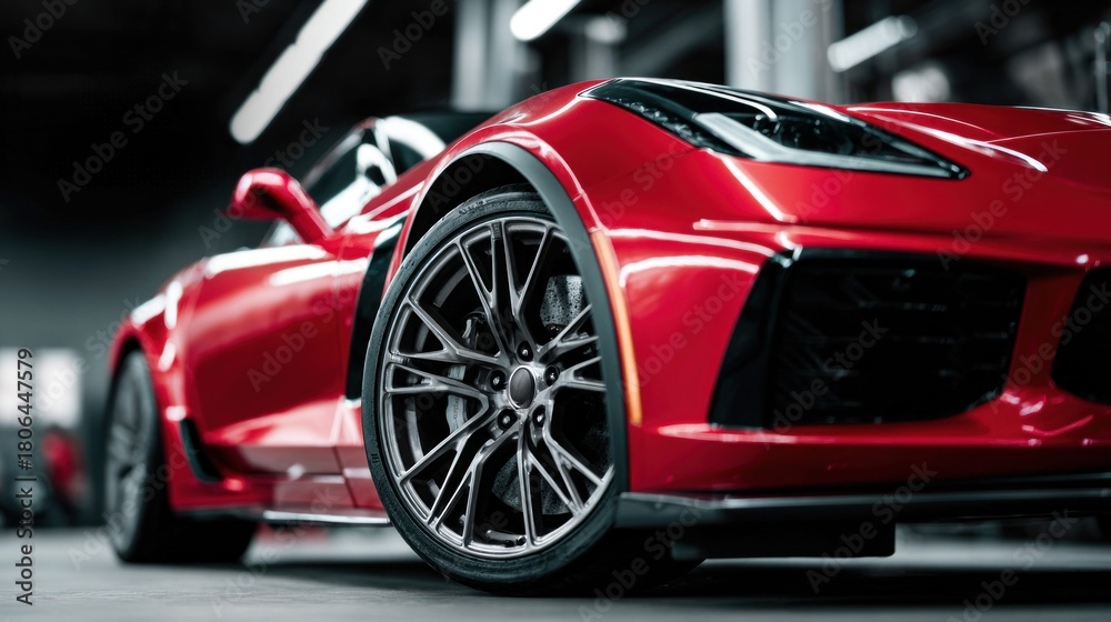 Plakat do Fitness Clubu - Close-up of a sleek red sports car, showcasing its stylish design and powerful presence #1806447579