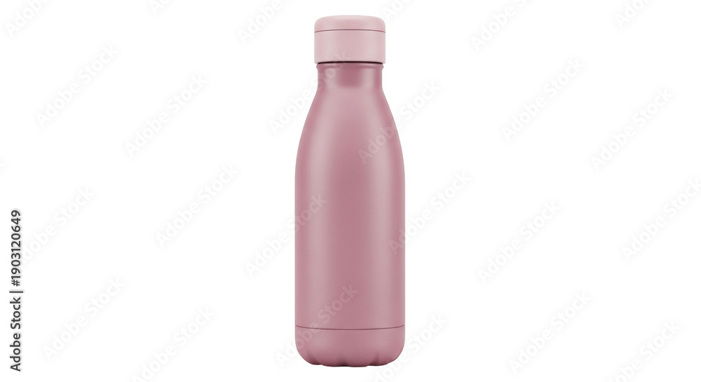 • Dusty rose water bottle isolated PNG on transparent background, reusable container for hydration and sustainable lifestyle