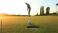 • A golfer prepares to putt towards the hole on a lush green golf course