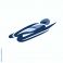 • Minimal abstract icon of a luge athlete streamlined in black, red, blue, and yellow shapes on white background, ideal for winter sports branding, apps, or event signage.