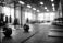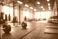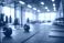 Modern empty gym interior with barbell weights and training equipment