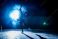 Plakat do Fitness Clubu - Silhouette of a figure skater performing on a dark indoor ice rink with bright blue backlight and... #1940421457