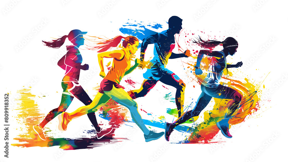Plakat do Fitness Clubu - Isolated colorful silhouettes of diverse athletes runners while competition. #809918352