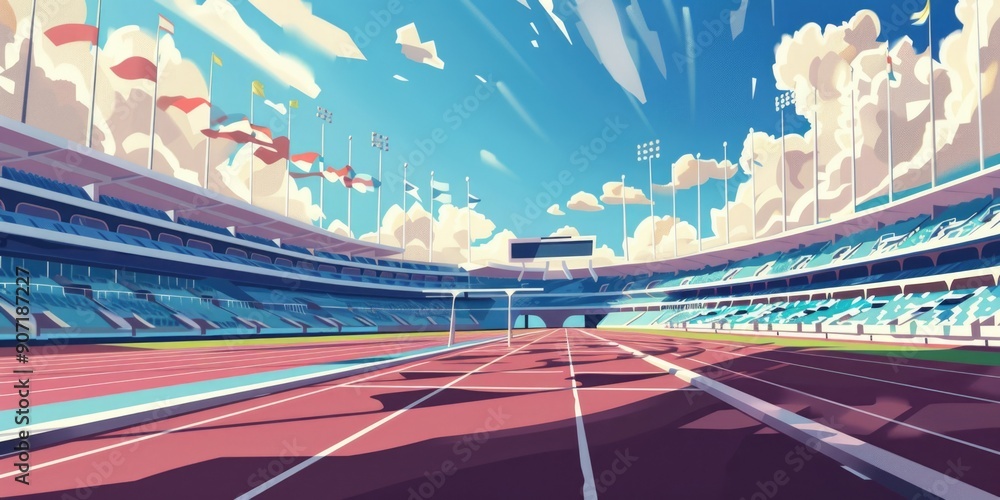 Plakat do Fitness Clubu - A digital illustration of an outdoor stadium with a running track, suitable for sports or... #907187227