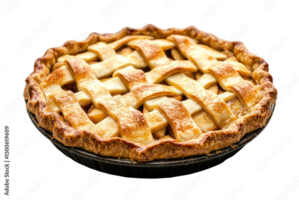 • Delicious baked apple pie with lattice crust pattern with transparent background