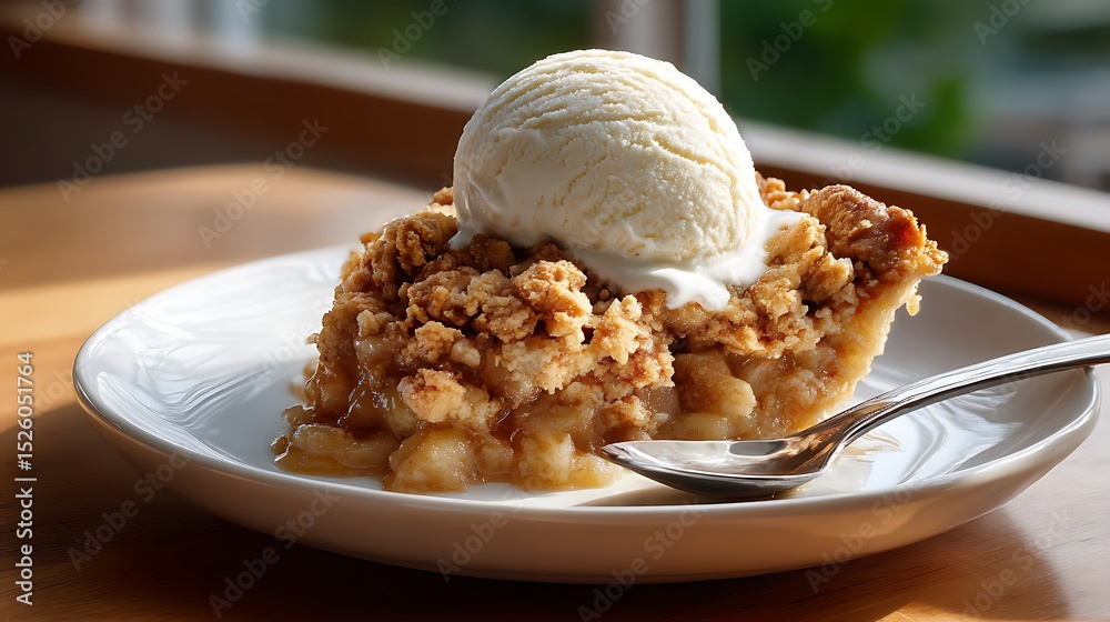 • Warm Apple Crumble Pie Topped with Vanilla Ice Cream