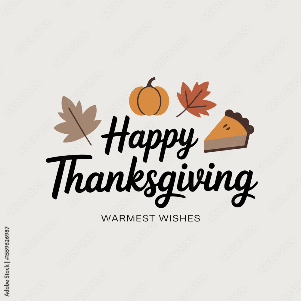 • Pumpkin and pie themed minimalist thanksgiving design with warmest wishes text for seasonal sticker or label