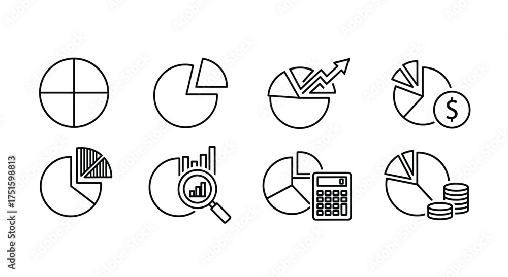 Plakat do Gabinetu Weterynaryjnego - Collection of hand drawn pie chart icons representing data and finance #1751598813