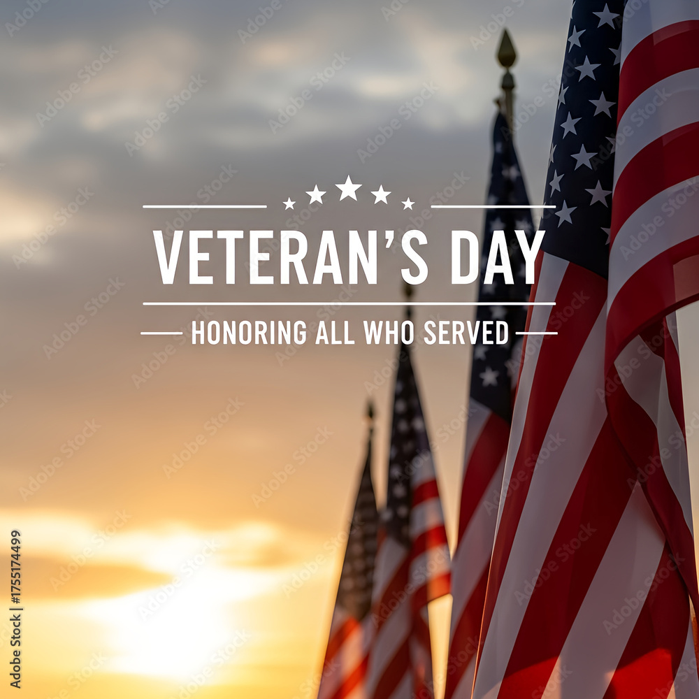 Plakat do Gabinetu Weterynaryjnego - Honoring Service A Veterans Day Tribute with American Flags at Sunset #1755174499