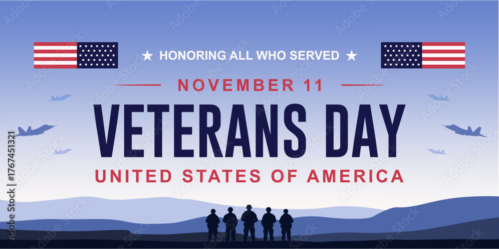 • Honoring Veterans Day 2025 background. Veterans Day Background Design. Honoring all who served. Greeting Card Banner, Poster, Vector Illustration.