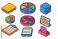 • Board Game Elements. Isometric vector illustration set Board games – question card, pie piece token, turntable board; category