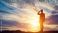 • Soldier saluting at sunset. Army, salute, patriotic concept.
