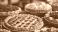 • A variety of freshly baked fruit pies with different toppings and lattice designs, displayed on a table.