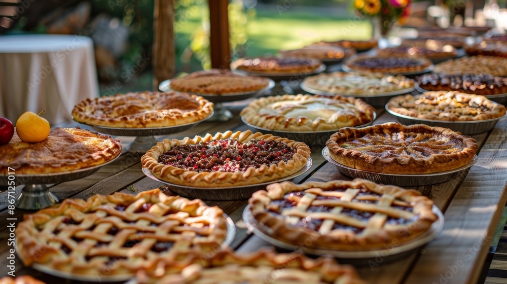 Plakat do Gabinetu Weterynaryjnego - A long table set with a variety of freshly baked pies all made from ingredients grown on local... #867125017