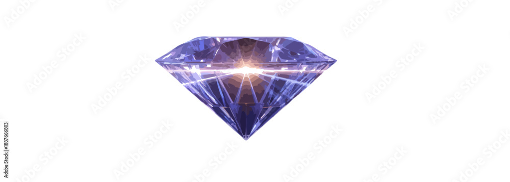 • Lśniący, fioletowy diament z efektem blasku i przezroczystym tłem, symbol luksusu i wartości.