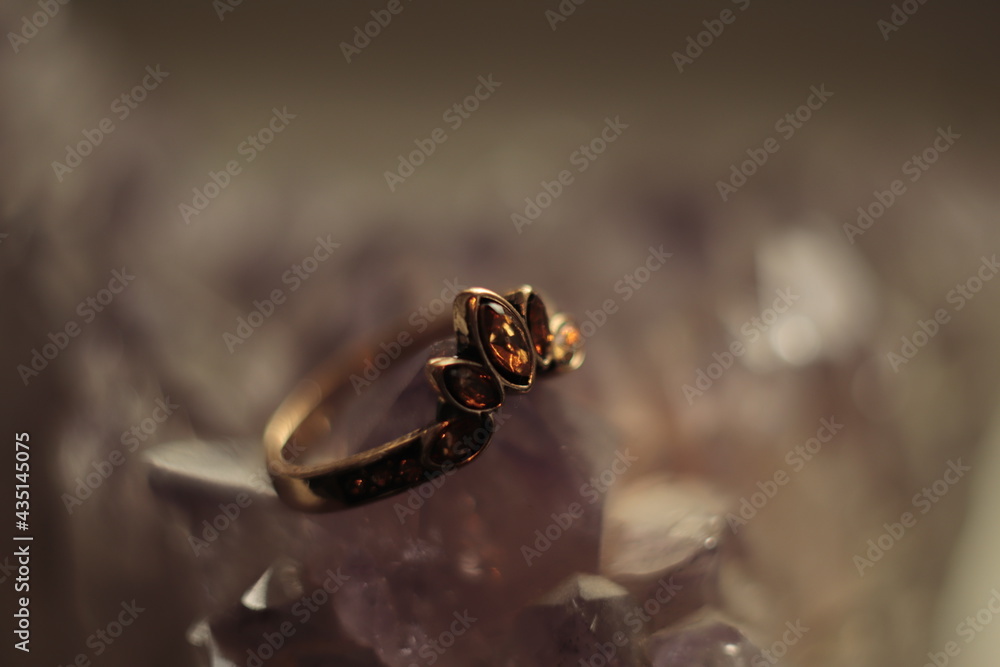 Plakat do Jubilera - mały pierścionek z kolorowym oczkiem widziany z bliska #435145075