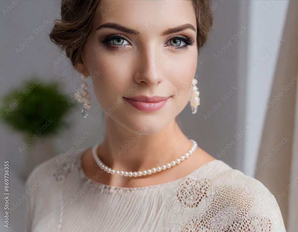 Plakat do Jubilera - Piękna kobieta modelka i naszyjnik z pereł #869736355
