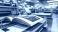 • A vibrant printing facility featuring an open book on a printing press with industrial machinery in the background.