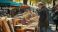 • Locals browse unique antiques and vintage books at a bustling flea market under sunny skies