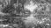 • Willow tree hanging over a quiet pond with ducklings and lily pads, gentle ripples and reflected light, Illustration for Children's story books 14045442 2