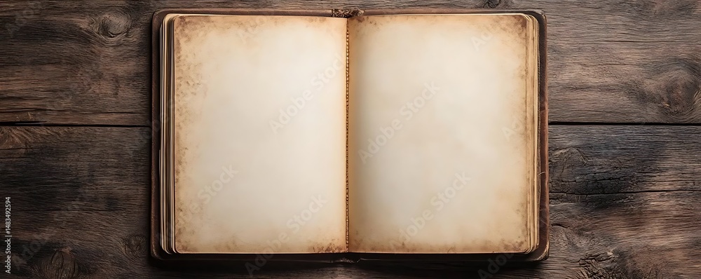 Plakat do Księgarni - Open antique book on wood #1483492594