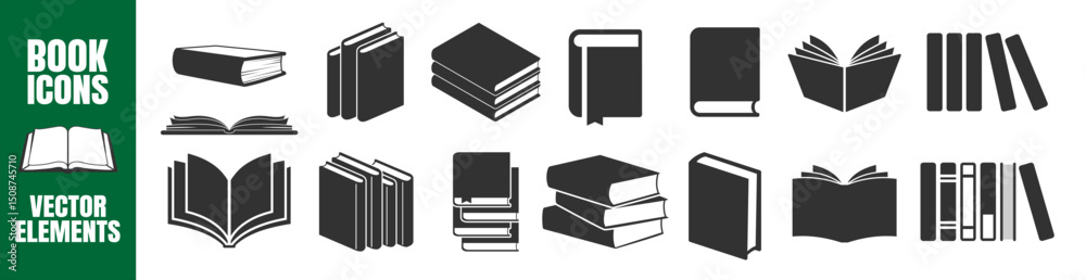 Plakat do Księgarni - Book icons set isolated on transparent background. Simple book symbol #1508745710