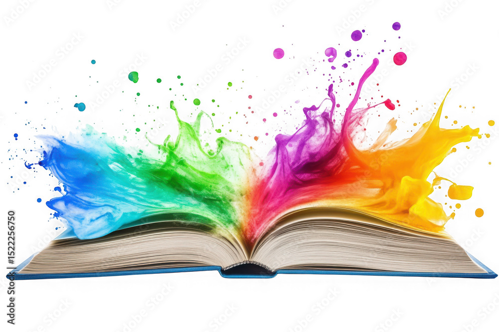 Plakat do Księgarni - Colorful book with paint splashes png, open book with rainbow colors, illustration, design... #1522256750